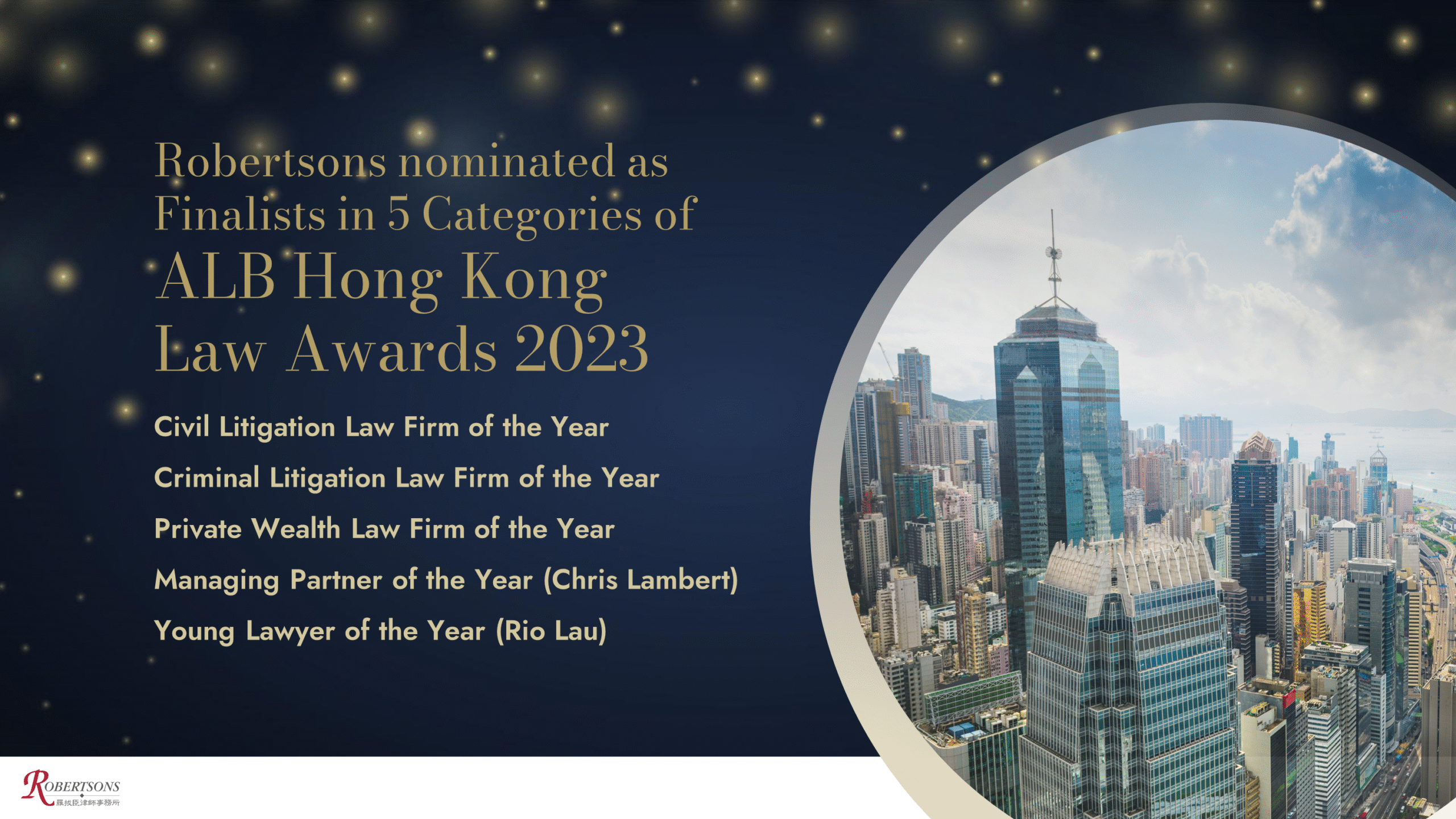 Robertsons nominated as Finalists in 5 Categories of ALB Hong Kong Law Awards 2023