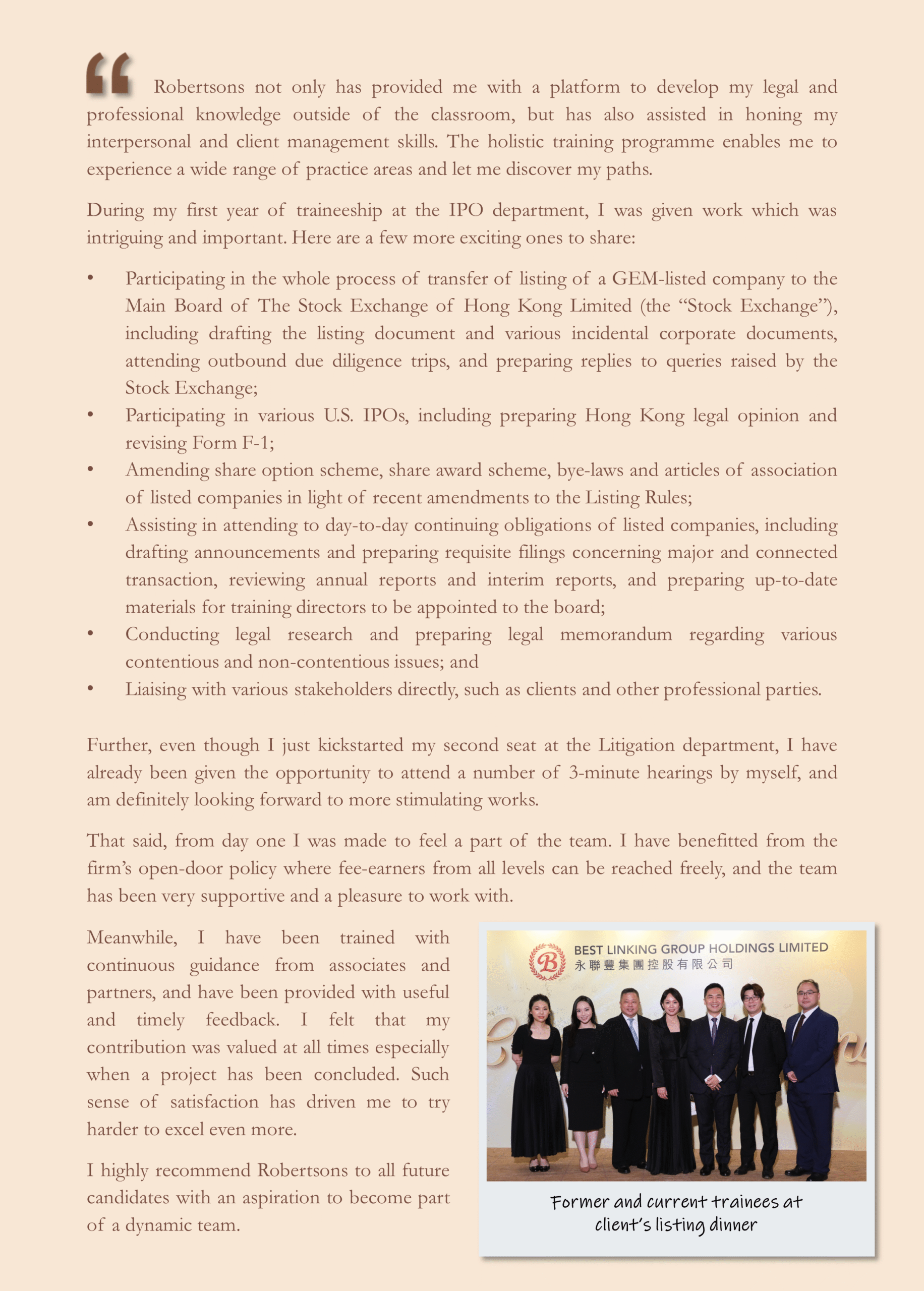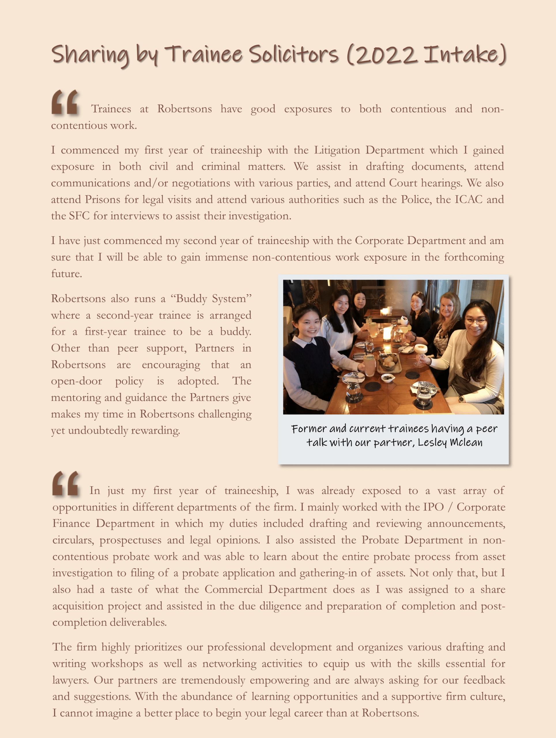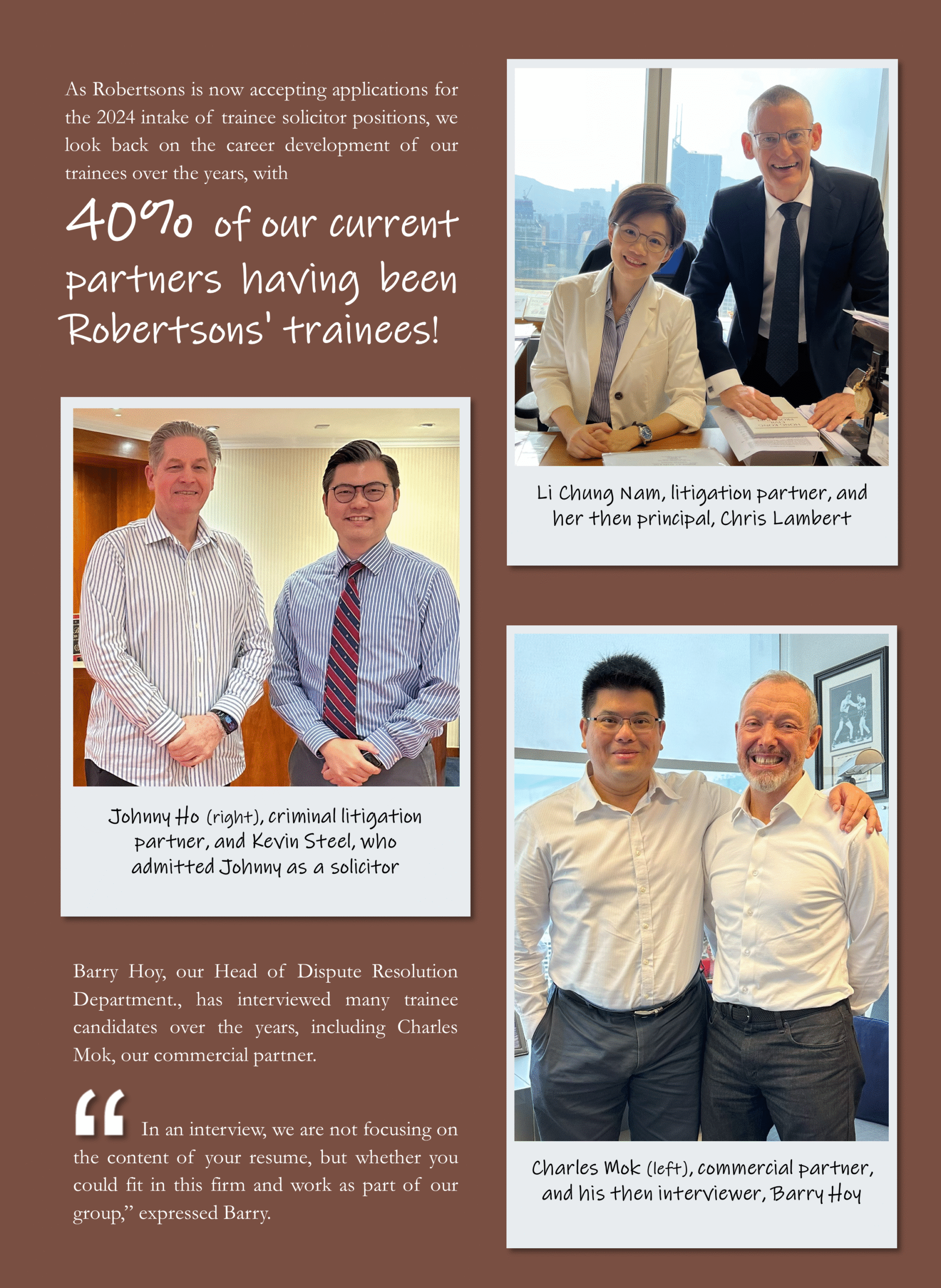 Home __ News & Publications __ Featured story for trainee solicitor recruitment: 40% of our current partners have been Robertsons’ trainees!