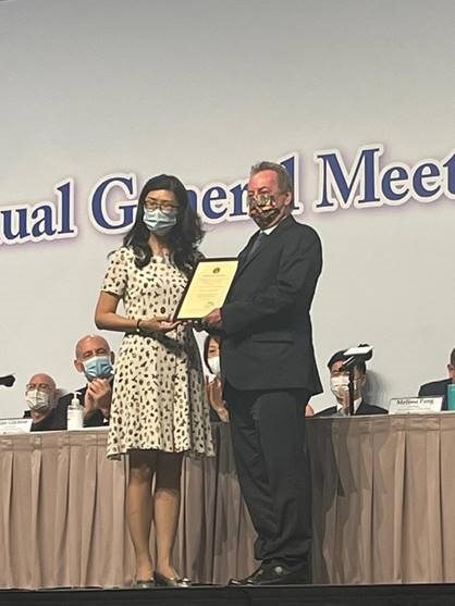 Michael Lintern-Smith attended the 2021 Annual General Meeting of the Law Society of Hong Kong to give a speech and receive an award. He is pictured here giving the speech and receiving the Roll of Honour from Melissa Kaye Pang, the President of the Law Society of Hong Kong. The President made the following comments about Mr. Lintern-Smith.