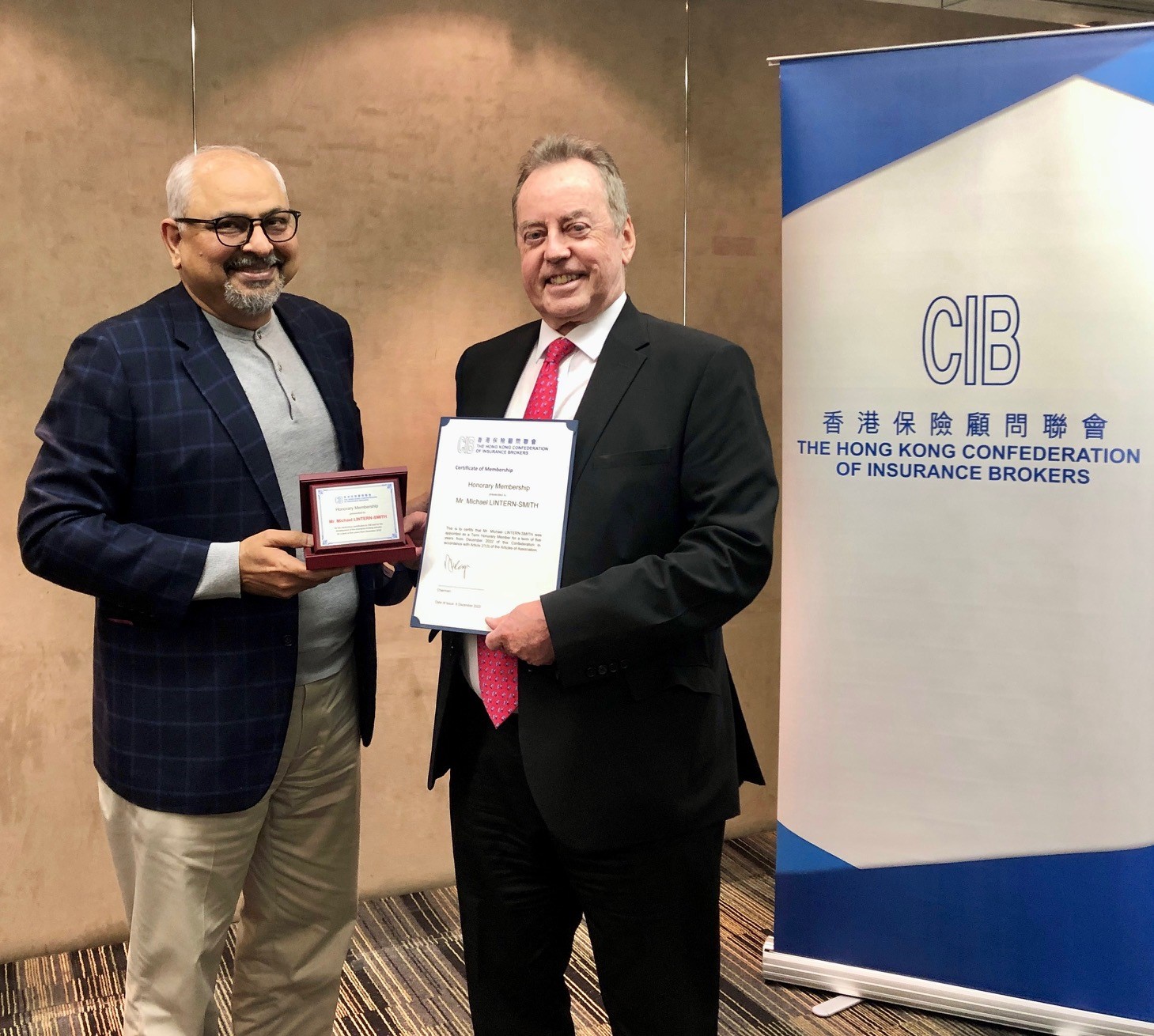 Michael Lintern-Smith was awarded an Honorary Membership by the Hong Kong Confederation of Insurance Brokers (HKCIB) on 5 December 2022. He first started advising the HKCIB in relation to the disciplinary procedures twenty-five years ago. He served ten years as the Chairman of the Disciplinary Committee and then afterwards Robertsons took over the clerkship. He handled all the disciplinary cases before the HKCIB until this role was taken over by the newly formed Insurance Authority in 2019.