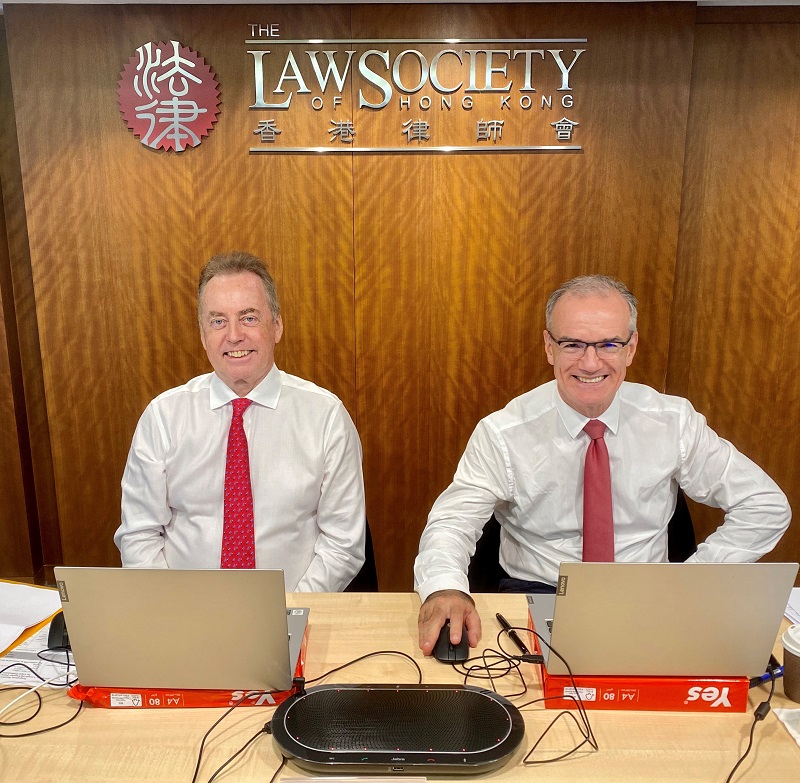 Michael Lintern-Smith pictured here with Alan Linning giving a seminar for 440 solicitors on the subject of the mutual evaluation report of the Financial Action Task Force (FATF) on Hong Kong compliance.