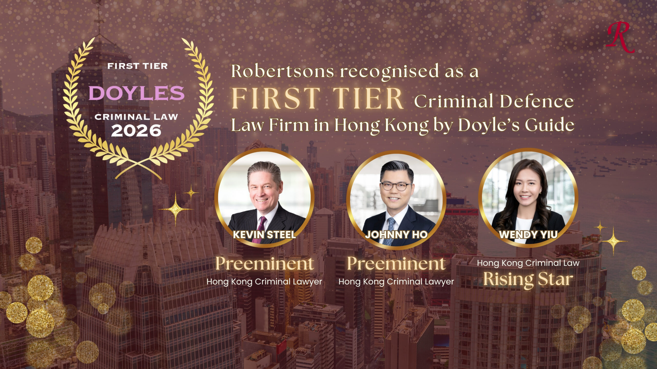 Robertsons recognised as a First Tier Hong Kong Criminal Defence Law Firm by Doyle’s Guide