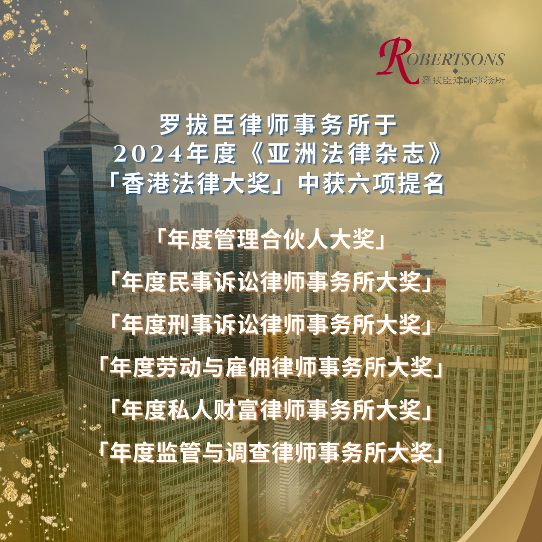 本所于2024年度《亚洲法律杂志》「香港法律大奖」中获六项提名