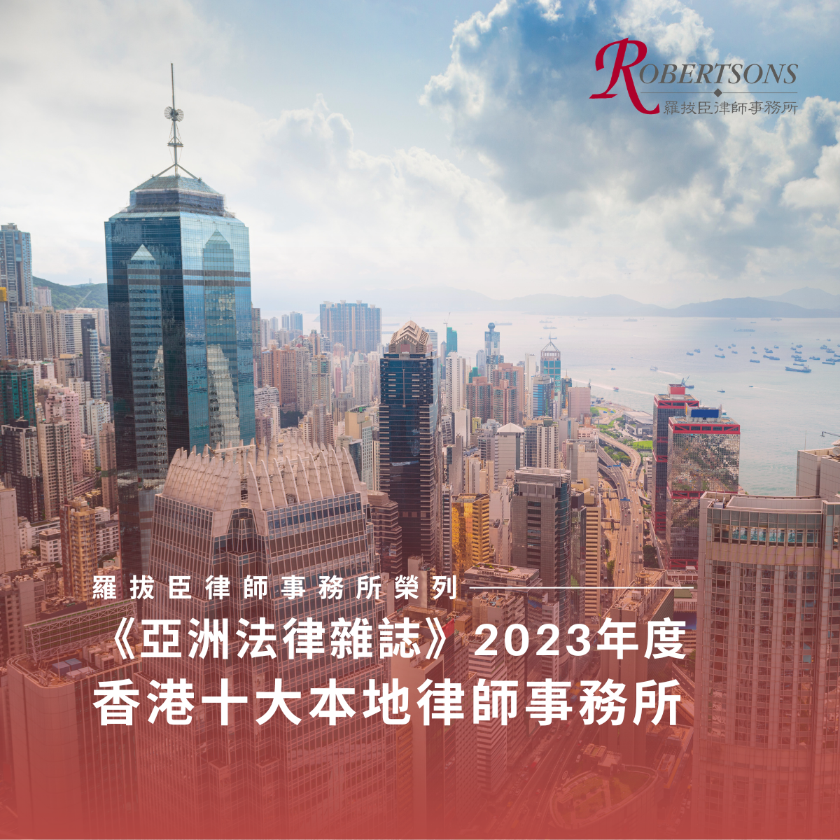 湯森路透旗下的《亞洲法律雜誌》 (Asian Legal Business, ALB) 在其2023年11月刊中發佈了「亞洲最大50家律師事務所」名單,本所再次榮列香港十大本地律師事務所。